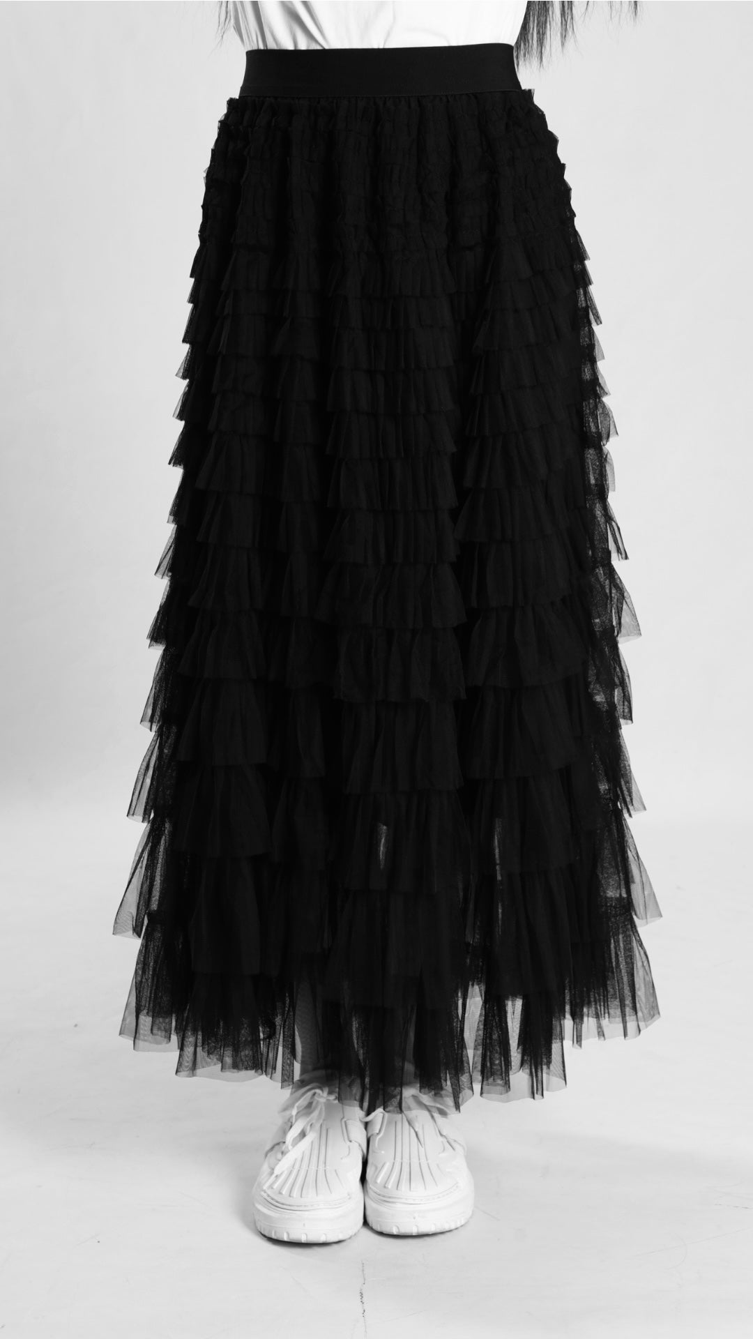 Dieser stilvolle Tüllrock ist ein echter Hingucker! Die mehrlagigen Volants verleihen ihm eine verspielte und zugleich elegante Note, während der elastische Bund für optimalen Tragekomfort sorgt. Der luftige, halbtransparente Stoff schafft eine leichte, schwebende Silhouette, die sich perfekt für besondere Anlässe oder moderne Alltagslooks eignet.